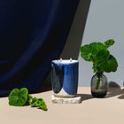 This beautiful blue ceramic vessel by Daisy Cooper is filled with Geranium Leaf & Bergamot scented wax for those looking for a musky, clean, non-sweet ambiance.